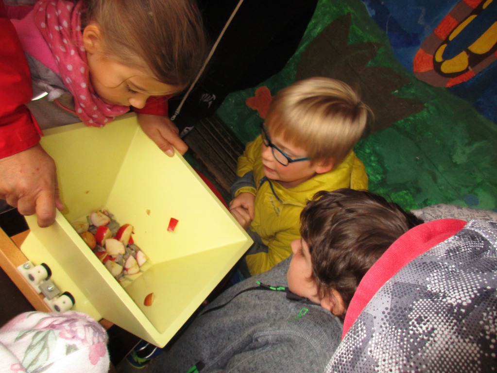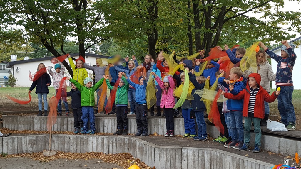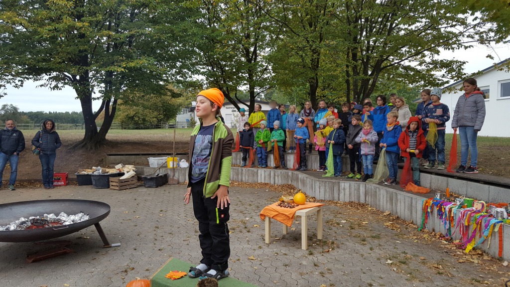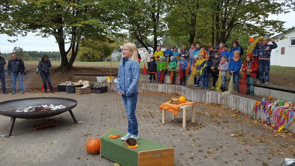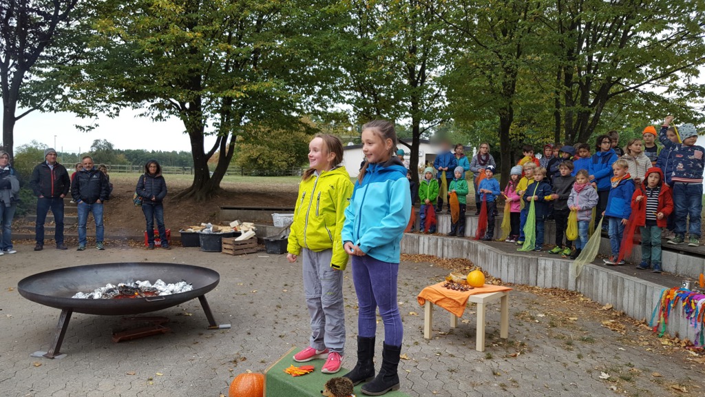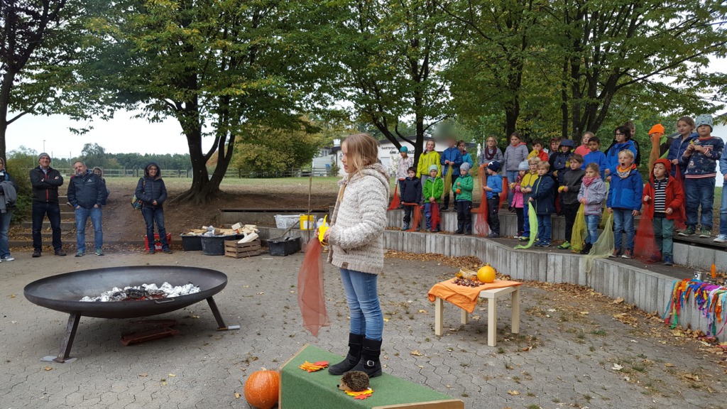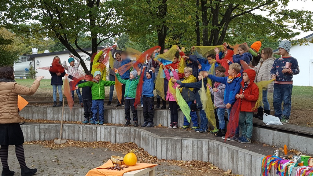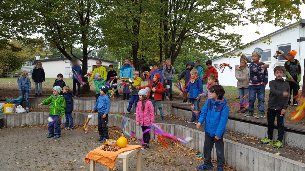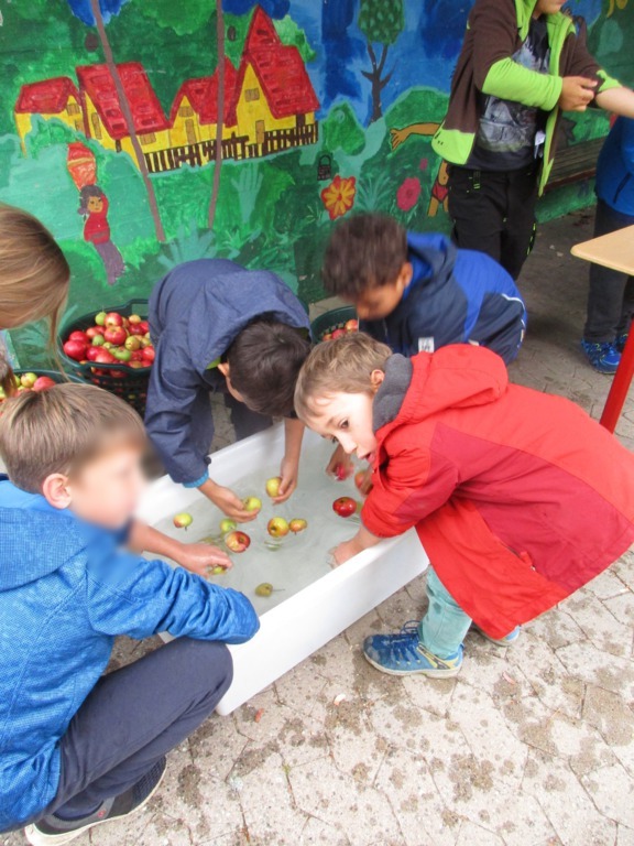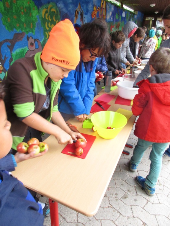 Alle Kinder der Grundschule Hagelloch und ihre Lehrerinnen machten sich an einem kühlen Herbsttag im Oktober auf den Weg, um Äpfel für das gemeinsame Apfelsaftpressen am Nachmittag zu sammeln. Auch der Kräuterquark für die Kartoffeln, die es zum traditionellen Kartoffelfeuer gibt, wurde am Vormittag von den Kindern zubereitet. Im Rahmen des Streuobstwiesenprojekts, das Frau Gutensohn mit der Klasse 3/4 durchführt, organisierte sie eine Apfelpresse, die uns für einen Nachmittag lang zur Verfügung stand. Alle Kinder schneideten fleißig kiloweise Äpfel und pressten diese dann zu leckerem Apfelsaft. Währenddessen bereiteten einige Eltern schon das Kartoffelfeuer vor. Nach herbstlichen Gedichten und Liedern, die von den Kindern eingeübt und vorgetragen wurden, saßen alle gemütlich um das Kartoffelfeuer und konnten die Kartoffeln mit dem Kräuterquark und dazu einen frischen Apfelsaft genießen. Nun konnten nach einem geselligen Nachmittag alle in das lange Wochenende starten.