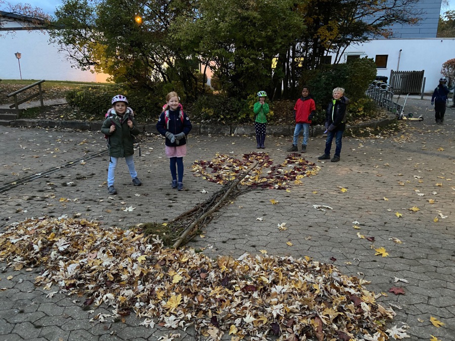 Zusammen mit Frau Cano haben die Zweitklässler einen Herbstbaum gelegt. Die Kinder waren sehr stolz auf ihr leider vergängliches Kunstwerk.