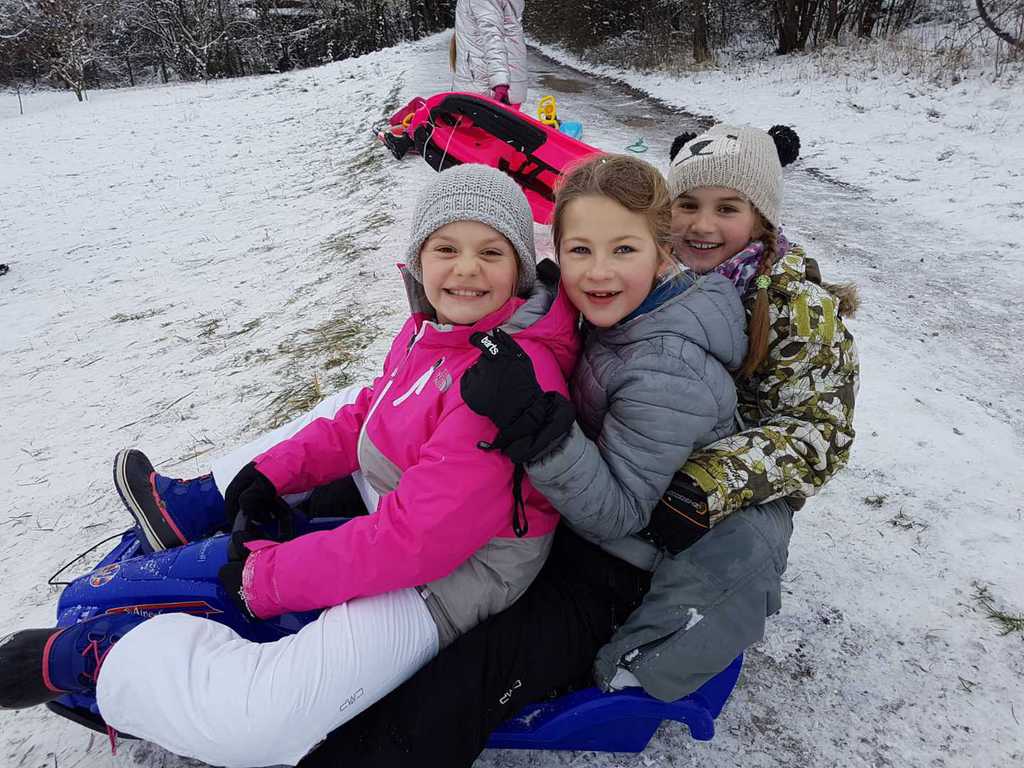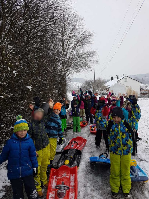 Hagelloch wurde Anfang Januar in eine wunderschöne, weiße Winterlandschaft verwandelt. Wir entschieden uns also spontan, den Schnee auch auszunutzen. Freitag morgens kamen alle Kinder dick eingepackt und mit ihren Schlitten im Gepäck zur Schule. Gemeinsam liefen wir nach der ersten Schulstunde zur Schlittenwiese, um dort einige Male die Wiese hinunterzusausen. Zwischendruch konnten wir uns auch mit warmem Tee und unserem Vesper stärken. Es war sehr kalt, deshalb machten wir uns nach zwei Stunden Schlitten- Spaß wieder auf den Rückweg zur Schule, um uns dort wieder auszuwärmen. Es war ein toller Vormittag!