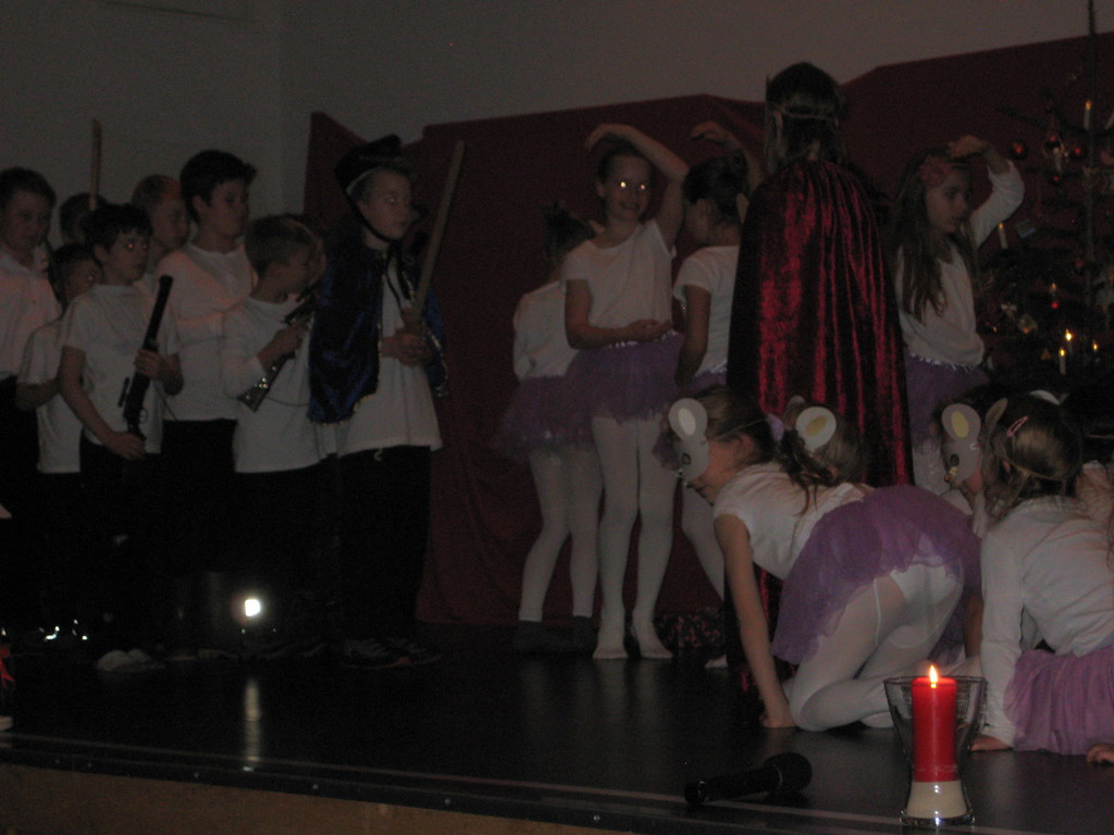 In diesem Jahr war neben dem Lichtertanz der Klasse 1/2 und dem gemeinsamen Musizieren die Aufführung von Klasse 3/4 des Balletts "Der Nussknacker" das Highlight unserer Weihnachtsfeier.